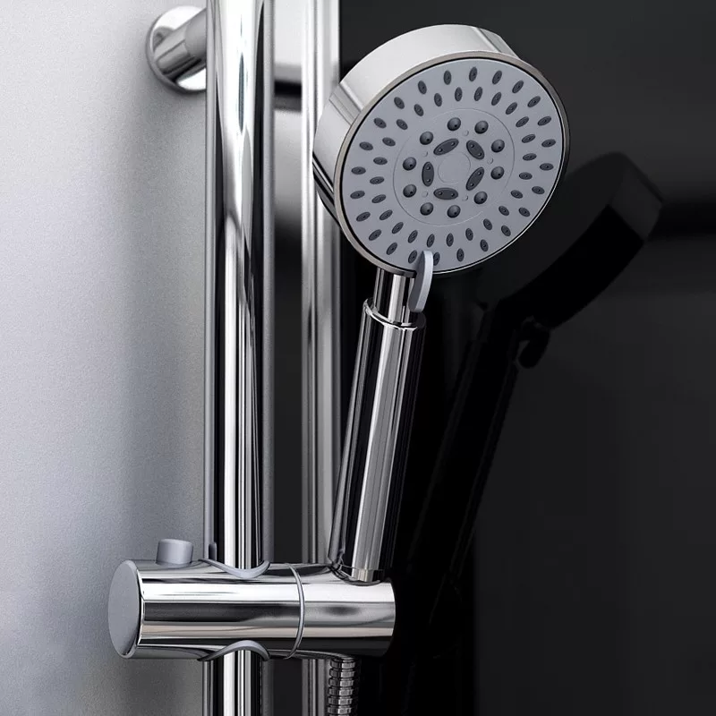 Robinetterie 3 éléments en laiton chromé Mitigeur thermostatique avec cartouche Vernet® Robinet inverseur 4 fonctions Support de douchette réglable en laiton chromé Flexible de douchette inox avec embout rotatif |