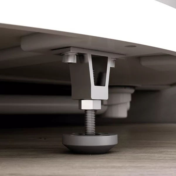 Receveur et toit en composite minéral Roulettes de porte doubles sur roulements Flexible d’évacuation diamètre 40 mm Bonde extra-plate et vidange Pieds du receveur réglables en hauteur Sonde de température |